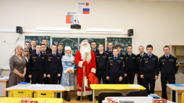 В Тамбовской области Полицейский Дед Мороз и Снегурочка поздравили кадетов с наступающими новогодними праздниками