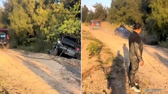 Буксировка легковушки из кювета закончилась полным провалом на глазах у её владельца