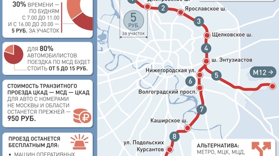 Проезд по МСД с 15 февраля станет для москвичей платным