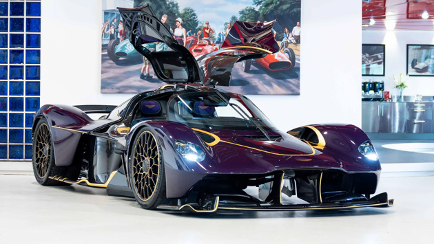 Представленный Aston Martin Valkyrie получил карбоновый кузов фиолетового оттенка, который дополнен 24-каратным золотом. Драгоценный металл нанесен на передний сплиттер, пороги, контуры воздухозаборников, а также на капот, крышу и диффузор. «Золотая» отделка продолжается и в салоне. Кроме того, модель оснащена выхлопной системой из жаропрочного инконеля и кастомными колесными дисками.