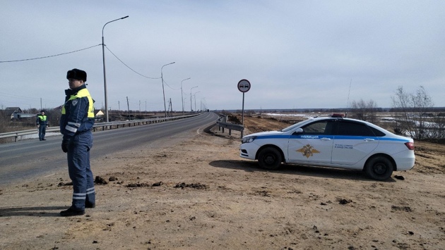 В Тюменской области госавтоинспекторы несут службу в местах возможного затопления паводковыми водами