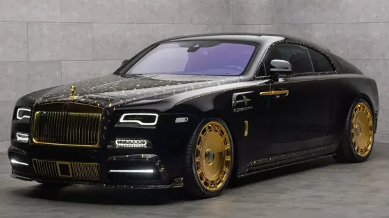 В рамках своей премиальной программы Linea d’Oro тюнинг-ателье Mansory представило роскошный вариант Rolls-Royce Wraith. Основной акцент сделан на отделке 24-каратным золотом, которое использовано как в экстерьере, так и в интерьере — от панелей кузова до кованых колес. Новый аэродинамический обвес выполнен из углепластика и придает купе более агрессивный вид.