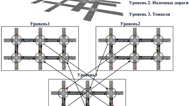 Ученые разработали гибридный эволюционный алгоритм, который позволяет оптимизировать пропускную способность городских дорог на 5–15%. Система сочетает в себе методы агентного имитационного моделирования, искусственный интеллект и некоторые математические и биологические (эволюционные) принципы, благодаря чему, анализируя тысячи возможных конфигураций дорог, находит самые эффективные варианты расположения дорожной инфраструктуры. Разработка будет полезна при проектировании более удобных и менее загруженных дорожных сетей, включая многоуровневые развязки и тоннели. Результаты исследования, поддержанного грантом Российского научного фонда, опубликованы в журнале IEEE Access.Современные города, особенно мегаполисы, сталкиваются с растущими транспортными проблемами — пробками и неэффективным использованием дорожного пространства. Традиционные методы проектирования дорожных сетей — математические модели, статический анализ пропускной способности и ручное проектирование — часто не учитывают динамику транспортных потоков и сложность городской инфраструктуры.Использовать алгоритмы на основе искусственного интеллекта в этом случае эффективнее. Они могут предложить более адаптивные решения, поскольку способны анализировать большое количество различных транспортных потоков в реальном времени. Однако большинство существующих решений фокусируются на узких задачах: одни алгоритмы оптимизируют только светофорное регулирование, другие работают исключительно с поиском кратчайших маршрутов, третьи моделируют потоки на отдельных перекрестках без учета общей сетевой структуры. Поэтому нужны новые инструменты, которые будут одновременно анализировать и оптимизировать все ключевые параметры дорожной сети.Ученые из Центрального экономико-математического института РАН (Москва) разработали гибридный генетический алгоритм, который сочетает методы многоагентного моделирования, искусственного интеллекта, теорию графов — математические инструменты, описывающие свойства сетей и связей между их элементами, — и эволюционные принципы изменчивости живых организмов. Система ищет оптимальные решения посредством механизмов, аналогичных тем, что существуют в биологии, — отбору, кроссинговеру (обмену участками хромосом при делении клеток) и мутациям. Используя предложенный алгоритм нечеткой кластеризации, система анализирует структуру транспортного потока, предсказывает заторы и предлагает оптимальную конфигурацию новых дорог, включая расположение перекрестков, эстакад и туннелей.Для тестирования системы исследователи создали серию моделей различной сложности, в частности микроскопические, основанные на отдельных агентах — транспортных средствах, и мезоскопические, оперирующие агентными кластерами (группами транспортных средств). Эти модели разработаны на основе феноменологического подхода Бекларяна — Акопова, который авторы ранее успешно применили для анализа дорожного движения в сетях типа «Манхэттенская решетка». Модели используют системы дифференциальных и конечно-разностных уравнений для моделирования различных сценариев движения и взаимодействия транспортных средств. Простейшие из них были сопоставимы по масштабу с обычным перекрестком и использовались для отработки базовых функций ра