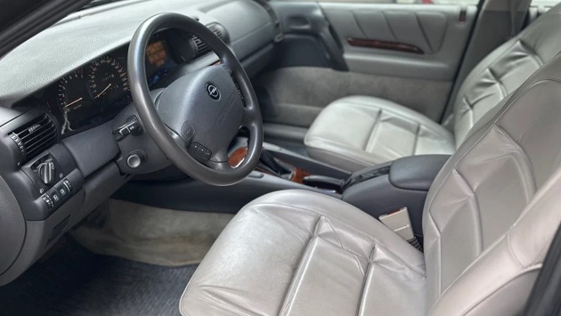 Представленный в объявлении образец разительно отличается от большинства машин марки, продающихся в России. С первого взгляда может показаться, что он только вчера выехал из стен автосалона. Кузов, окрашенный в зеленый металлик, выглядит безукоризненно, а опрятный, обитый кожей салон с деревянными вставками на торпедо и дверях не вызывает ни малейшего сомнения в маленьком пробеге. Вместе с тем для своего времени данный седан имел достойную комплектацию, включающую в себя двухзонный климат-контроль, обогрев передних сидений, электропривод солнцезащитной шторки и датчик давления в шинах.