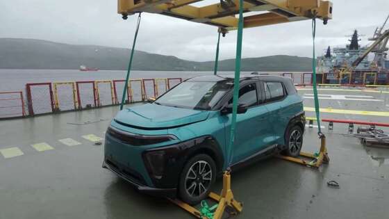 В видео подъехавший к причалу автомобиль с помощью специального крана грузят на борт ледокола «50 лет Победы». В данный момент экспедиция уже направляется на Северный полюс, и вместе с участниками рейса историческое путешествие совершает и первый российский серийный электромобиль Атом, сообщает пресс-служба. Почему этому придается такое значение и зачем вообще предсерийную машину потащили в Арктику?