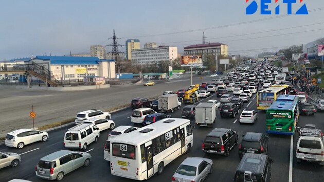 Оживление рабочих на проблемном перекрёстке Владивостока усилило вечерние пробки до 7 баллов