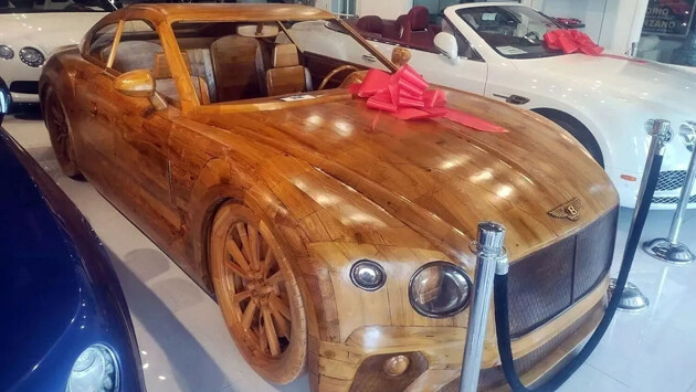 В одном из автосалонов Флориды, торгующем автомобилями Bentley, выставлена на продажу деревянная скульптура в виде Bentley Continental.