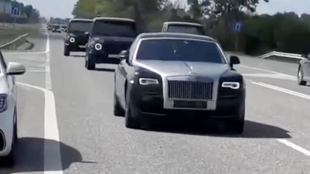 На записи видно, что в колонне едут не менее дюжины Mercedes-Benz G-класса, несколько Rolls-Royce и четыре спорткара Lamborghini. Впереди вереницы — машины сопровождения ДПС, в числе которых «заряженный» кроссовер Mercedes-AMG GLE 53, поступивший на службу в Чечне еще в 2020 году.
