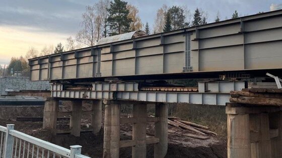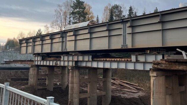 На этой дороге в рамках нацпроекта «Инфраструктура для жизни» (ИДЖ) реконструируется старый мост через реку Лып. В настоящий момент рабочие завершили надвижку нового пролётного строения длиной 63 метра и весом 286 тонн.