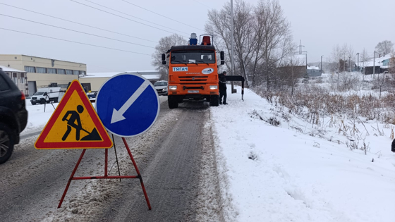 На окраине Кемерова едва не разрушилась дорога, там идут ремонтные работы.