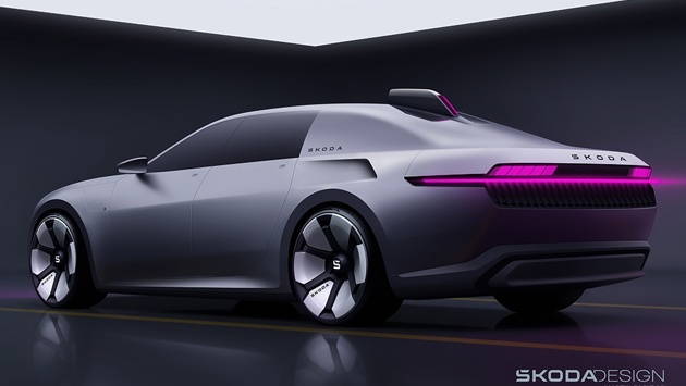 Современная версия включает элементы, отсылающие к оригиналу: графику четырех фар, рельефный капот с логотипом Skoda, световые полосы спереди и сзади.