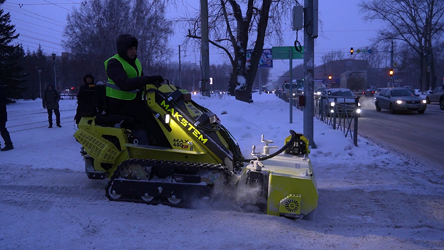 В распоряжении дорожников Новосибирска появилась новая техника. Это компактный ледоруб со сменным оборудованием. Такая машина поможет быстрее и качественнее расчищать тротуары не только зимой, но и летом.