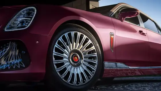 Длина машины составляет 5,3 метра, а колесная база – 3,2 метра. Особенностью дизайна стала радиаторная решетка с платиновым напылением, что подчёркивает статус модели. Она должна стать новым символом престижа в сегменте люкс.