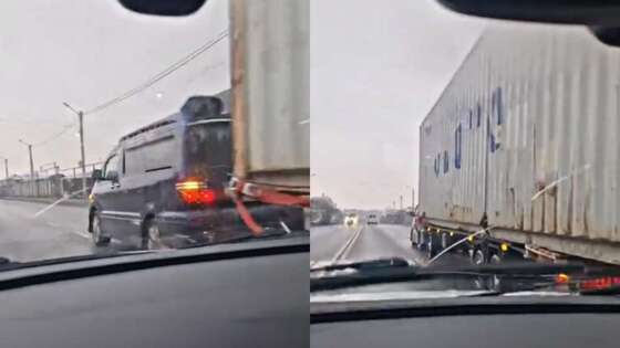 В социальных сетях Казахстана привлекло внимание видео, где японский минивэн тянет Toyota Alphard огромный трехосный прицеп, на котором установлен 40-футовый контейнер длиной более 12 метров.