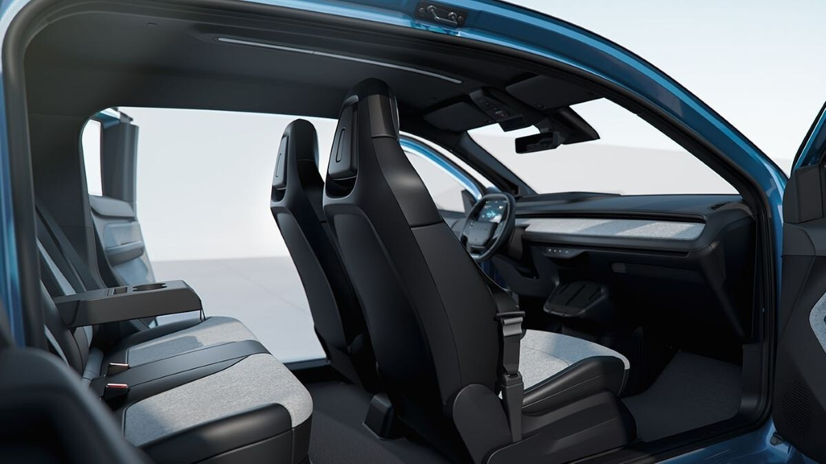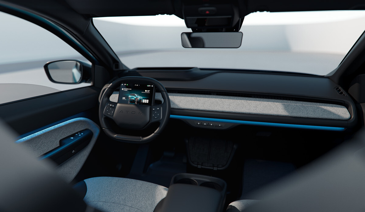 Кузов «Атома» лишён средней стойки, а задние двери распахиваются против хода автомобиля. Чтобы сесть назад, требуется нажать кнопку: электропривод приоткроет переднюю дверь, чтобы безопасно распахнуть заднюю створку, после чего передняя автоматически закрывается обратно.