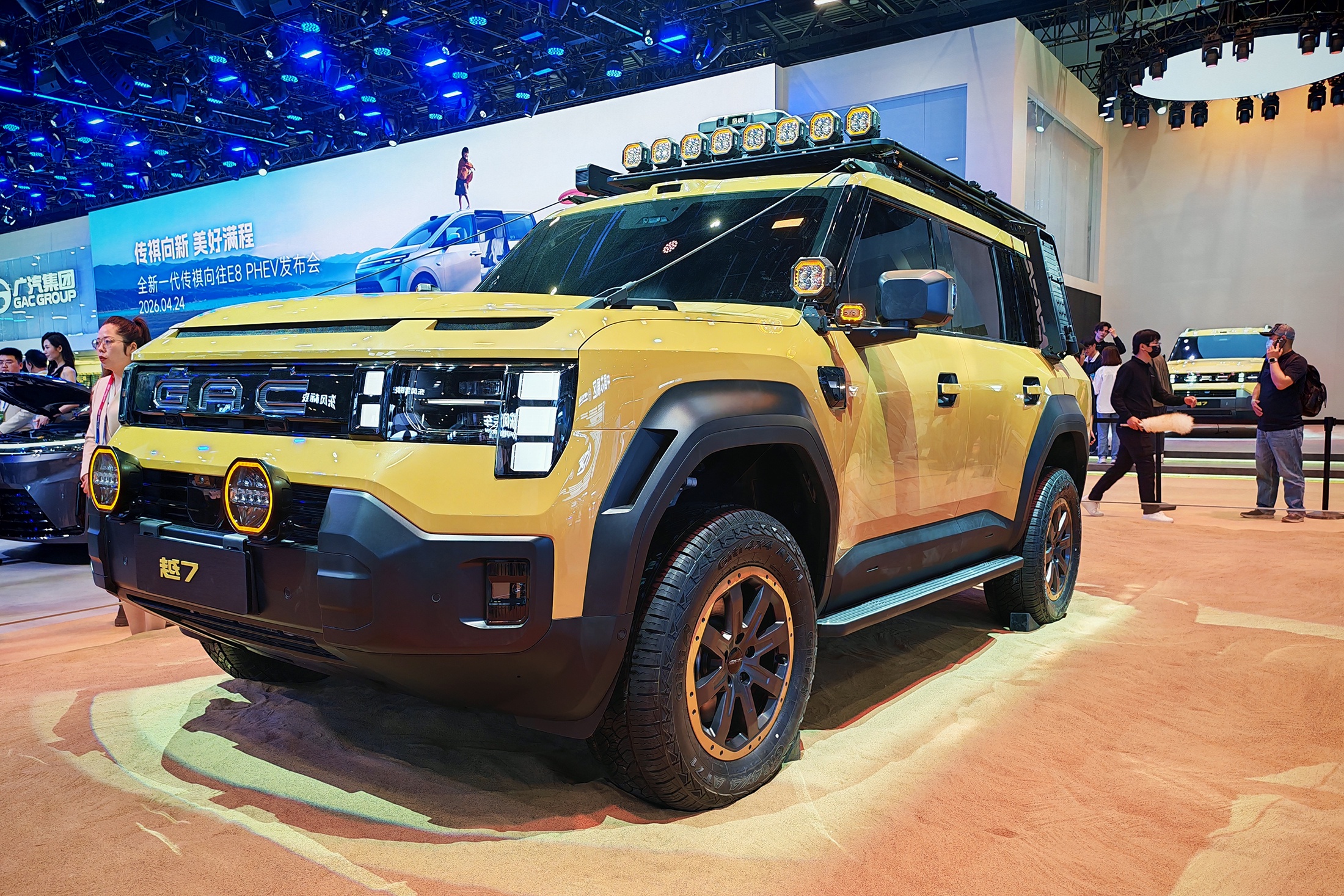 Марка GAC показала внедорожник Yue 7, на создание которого потратили более полумиллиарда юаней (5,5 млрд рублей). Машина получила брутальную внешность в стиле Land Rover Defender и нового Toyota Prado с акцентом на рубленые формы и коробчатый формфактор кузова.