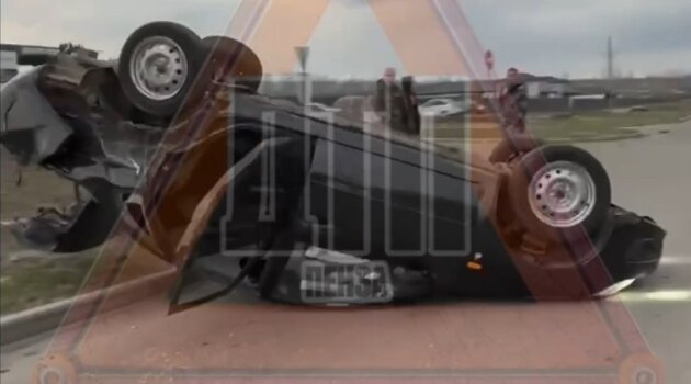 У коттеджного поселка на окраине Пензы перевернулся автомобиль