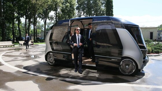 ЦХИНВАЛ, 21 июл — Sputnik. Премьер министр РФ Дмитрий Медвдев протестировал беспилотный автобус "ШАТЛ", сконструированный "КАМАЗ" и НАМИ, сообщает РИА Новости. В пятницу премьер-министр проводит на площадке НАМИ совещание по вопросу развития электрического и беспилотного транспорта в стране. Руководитель проекта "Шатл" (широкоадаптивная транспортная логистика) Алексей Гуськов рассказал, что в настоящее время выпущена единственная модель автомобиля, она и представлена премьеру. "Он (автобус) еще только-только появился", — сказал он журналистам. Возможно, данный автобус будет использован на чемпионате мира по футболу в 2018 году, рассказал журналистам заместитель генерального директора НАМИ Алексей Гогенко. "В марте 2018 года у нас будет четыре таких экземпляра. Эксплуатация пока будет только по закрытым территориям. Возможно, будет получено одобрение использовать его на чемпионате мира по футболу", — сказал он. Кроме того, Медведев ознакомился с работой отдела электрики и электроники для автомобилей научного предприятия. Генеральный директор НАМИ Сергей Гайсин показал премьеру стадии разработки современных электронных и гибридных автомобилей. Кроме того, Гайсин рассказал Медведеву об электронике автомобиля: электрическом моторе, управлении, батарее электрического или гибридного автомобиля. Участвовали в осмотре также министр промышленности Денис Мантуров, министр энергетики Александр Новак, вице-премьер Аркадий Дворкович, генеральный директор ОАО "КАМАЗ" Сергей Когогин.