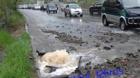 Во Владивостоке снова «разорвало» асфальт