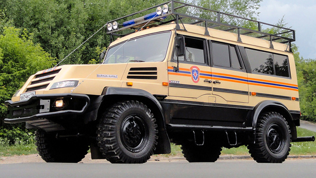 Chevrolet Suburban и Ford Excursion кажутся вам гигантами? Что ж, сейчас вы узнаете много нового о настоящем размере! На просторах родины могло появиться много интересных автомобилей, но, увы, не всем было суждено преодолеть сложный путь от экспериментальной разработки до конвейера или хотя бы мелкосерийного производства. Одной из идей, отправившейся пылиться в архив, стал поразительный внедорожник КамАЗ "Бархан", который был создан отнюдь не самим автопроизводителем, а рожден по инициативе Камского завода топливной аппаратуры в далеком 2006 году. На фотографиях он выглядит большим, но в реальности превосходит все ожидания и обладает поистине гигантскими габаритами, ибо в его основу лег двухосный армейский грузовик КамАЗ-4350 "Мустанг" с полным приводом и колесной базой, равной 4180 мм. Длина короля оффроуда равна 6740 мм, а его ширина – 2500 мм. Высота делает контрольный выстрел в сознание зрителя – 2740 мм! Для сравнения, вышеупомянутый Chevy Suburban, являющийся одним из самых больших SUV в мире имеет габариты 5700 мм, 2045 мм и 1890 мм соответственно, поэтому тут уместны аналогии с другим монстром – International XT. Этот сопоставим по размерам с отечественной машиной. Начинку "Бархан" позаимствовал у КамАЗа, поэтому его анатомия до мозга рамы грузовая, военная, способная пережить Апокалипсис, а затем прослужить еще полвека: сохранены неразрезные мосты и рессоры, в которых уменьшили количество листов, а также 10,9-литровый камазовский двигатель мощностью 240 л.с. и десятискоростная коробка передач. Централизованная подкачка шин – в наличии. Другое дело, что внедорожник совершенно не похож на первоисточник, хотя использует каркас кабины и двери от заводских камских грузовиков. Если головная оптика вызывает дежавю и до боли напоминает фары ВАЗ-2110, то… зрение вас не подводит – это они и есть. Салон вполне цивильный, но те, кто имел удовольствие опробовать "Бархан" отмечают своеобразие посадки с низким расположением руля. Впечатляет? Нас – очень! Но возникает вопрос, почему "Бархан" так и остался построенный в единственном экземпляре, на который есть вполне логичный ответ. Машиной никто не заинтересовался, хотя ее потенциал пришелся бы ко двору МЧС. Судите сами – поразительная проходимость, неубиваемость, возможность разместить в салоне 12 человек или везти 2 тонны груза… Но увы. Кроме того, прототип оказался еще и очень дорогим, ценой в 105 тысяч долларов. В теории "Барханом" могли бы заинтересоваться любители экспедиционной техники, способной существовать вдали от цивилизации, но даже в этом случае продажи были бы единичными.