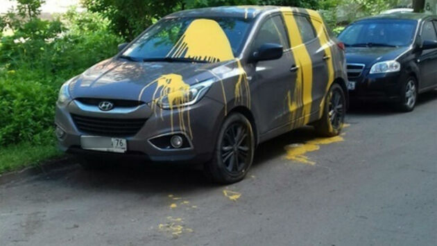 Неприятный сюрприз обнаружил владелец автоомбиля, припарковавшийся во дворе 6/2 по улице Доронина во Фрунзенском районе Ярославля. Его серый «Хёндай» ночью кто-то облил яркой жёлтой краской. В соцсетях обсуждают — не переборщили ли те, кто это сделал. С одной стороны, в городе остро стоит проблема с парковками во дворах. Хотят даже сделать многоуровневые парковки, чтобы выкроить место для машин. С другой стороны, многие осуждают такую вспыльчивость. - Так нельзя! Это слишком! Можно же как-то по-другому решить, — считает Наталья Румянцева, прокомментировавшая фото в группе «Жесть Ярославль» Вконтакте. Но соседи уверяют — дело не в делёжке парковки. - Машину облили не из-за того что заняли чье то парковочное место. Владелец машины из соседнего дома и очень часто ее паркует у нашего дома. И всегда было все хорошо, да и в принципе у нашего дома бывают свободные места, — написала Татьяна Янчуква.