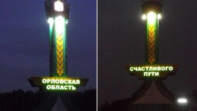 На въезде в Орловскую область подсветили знак