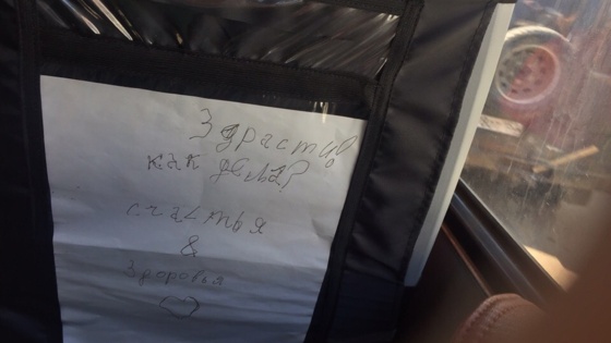 — Сегодня сажусь в автобус на единственное свободное место и в рекламном блоке перед носом вижу такое послание, — сообщила NN.RU нижегородка Елена. Если верить тексту записки (а почему бы и нет?), то она написана 9 июля Дмитрием и Артемом.