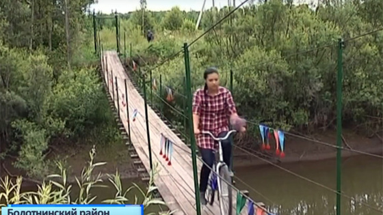 «Здесь вот пять лифтовых тросов, которые держат мост. Внизу пять, они используются в лифтовых шахтах. Заказаны были специально, сделаны из прочного материала», – рассказывает житель поселения Белогуры Игорь Белых. Подвесной мост соединяет путь из поселения Белогуры в деревню Кругликово. До того, как он появился, перебираться на другой берег приходилось разными способами. «Здесь грибные места, ягода, и всегда приходилось обходить через автодорожный мост, это получалось около 2,5 км . И кто знал район брода, переходили вброд. Было не особо удобно. Плотик здесь был сперва, потом деревянный мостик, наверное, лет пять. На зиму мы его убирали, весной снова устанавливали», – поясняет житель поселения Белогуры Игорь Белых. Мост построили по инициативе жителей поселения Белогуры. Все расходы они взяли на себя. Заказали у профессионалов проект, приобрели необходимые материалы, все строительные работы сделали сами. Движение по навесному мосту не прекращается ни на минуту. Кто на рыбалку, кто в магазин. «Люди же живут, а как переходить? Обходить далеко, там же и магазин, и школа. Нужен мост», – говорит житель деревни Кругликово Андрей Куликов. «Практически каждый день в деревню ездим, в магазин, и просто полюбоваться рекой хочется, когда свободное время есть. Мост очень красивый», – говорит жительница поселения Белогуры Элеонора Гафарова. «Доходим до моста, становимся на край – и кто щучкой ныряет, а кто ныряет просто солдатиком, некоторые бомбочкой, кто как любит», – рассказывает жительница поселения Белогуры Елизавета Юдина. В этом году белогуровцы объединились и все вместе вышли на ремонт моста. «Вся деревянная часть моста заменена. Тросы были промазаны, узлы у нас проверяются каждый год по весне, то есть идет осмотр моста. И в этом году мы все смазали, проверили полностью», – говорит житель поселения Белогуры Игорь Белых. Проверяли на совесть, лучше любого инспектора. Ремонтировали ведь для себя. Подвесной мост посреди леса – настоящее украшение здешних мест. Местные уверены – провисит не один десяток лет.