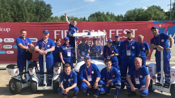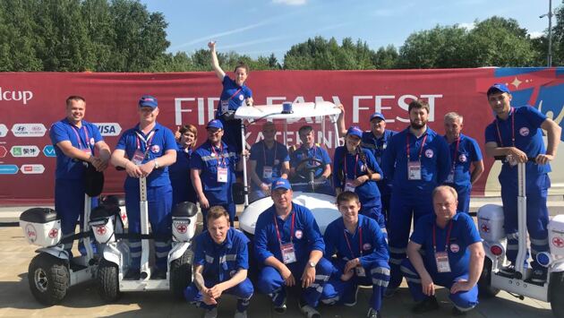 Три сегвея и электрокар появились в арсенале екатеринбургской медицинской службы в мае 2018 года. Как нам рассказали в Управлении здравоохранения, покупка была запланирована еще несколько лет назад, когда составлялся план по медицинскому обеспечению ЧМ по футболу. Первой площадкой, где новомодные транспортные средства получили боевое крещение, стала фан-зона в парке Маяковского. В День города, 18 августа, три сегвея и электрокара вновь выедут на дороги Екатеринбурга, чтобы оказывать помощь жителям и гостям города. Управлять ими будут сотрудники скорой помощи, уже имеющие опыт работы на этом транспорте. Два сегвея сегодня можно будет встретить на площади 1905 года. Ещё один сегвей будет курсировать по проспекту Ленина — по мосту от площади до улицы Горького. Электрокар будет базироваться на углу улиц Воеводина и Ленина. Накануне праздника мы поговорили в Евгением Рузановым, заместителем главного врача станции скорой медицинской помощи Екатеринбурга, о том, как врачам во время мундиаля удалось пересесть на современные транспортные средства. — Евгений Валерьевич, сколько всего медиков работало на сегвеях в фан-зоне и как их отбирали на скорой? Может быть, вам конкурс какой-то пришлось проводить? — Всего на мобильных средствах передвижения у нас в фан-зоне работали 3 смены по 5 человек. Смена — это 4 фельдшера и водитель электрокара. Три фельдшера — на сегвеях, ещё один ездил с водителем на электрокаре. То есть всего со всех подстанций скорой помощи нашего города мы выбрали 12 фельдшеров. Сразу решили, что это должны быть мужчины в возрасте до 35 лет — потому что для такой работы нужна сила и выносливость. Основным требованием FIFA была максимально быстрая эвакуация в медпункт тех, кому нужна медицинская помощь. А для нас было важно, чтобы у него, как говорится, глаза горели и он хотел помогать людям. Отбор проводили в несколько этапов и выбрали, без преувеличения, золотую дюжину. Девушки у нас в фан-зоне работали только в бригадах скорой помощи, которые базировались там вместе с их обычными машинами. — У кого-то были навыки езды, например, на гироскутере? — Нет, таких навыков не было ни у кого. Перед выездом в фан-зону мы провели несколько тренировок по часу-два на центральной подстанции. Технику освоили быстро, никто ни разу не упал и ни в кого не врезался. После этого была задача грамотно загрузить сегвеи: у каждого из них по 2 кофра — справа и слева. Каждый кофр вмещает 21 литр, то есть всего на одном сегвее можно перевезти 42 литра оборудования и медикаментов. В сегвее у нас размещен электродефибриллятор, перевязочный набор, складные шины, набор медикаментов — включая адреналин, мешок Амбу с дыхательной маской. Все это мы распределили по двум кофрам, чтобы не нарушить баланс. Каждый кофр, кстати, снимается. Это очень удобно в работе. На электрокаре, который предназначен для эвакуации пациента, основной инструмент — это носилки. Плюс обычная медицинская укладка. Фельдшер на электрокаре нужен для того, чтобы вовремя оказать помощь человеку, если во время транспортировки до медпункта ему станет хуже. — Дефибрилляторы в фан-зоне не пригодились? — К счастью, нет. Больше были востребованы препараты против повышенного артериального давления, обезболивающие, бинты. — Кому чаще всего приходилось оказывать помощь? — Гипертоникам, у которых повыш