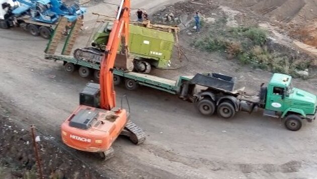 На улице Гришаева в саратовском поселке Солнечный опрокинулся прицеп тягача со стоящей на нем тяжелой строительной техникой. Фотографии, зафиксировавшие ЧП на стройплощадке, вчера, 18 августа, опубликовал в группе «Саратов онлайн» пользователь Влад Шепелев. Как видно на фото, при движении прицеп тягача потерял равновесие и опрокинулся на левый бок. На нем в это время находилась гусеничная строительная техника, предположительно, частично разобранная сваебойная машина или экскаватор. Очевидец также запечатлел, как строители пытаются поставить установку на гусеницы с помощью экскаватора. В комментариях к посту один из участников дискуссии предположил, что ЧП произошло из-за того, что строители не заблокировали поворотный механизм гусеничной установки. В итоге центр тяжести 20-тонного противовеса сместился на бок и увлек за собой прицеп. «Такое часто бывает из за спешки. Бульдозером чуть потянуть - он повернется и встанет опять как был.Тут работы на пять минут, если голова работает у рабочих», - резюмировал пользователь соцсети.