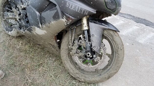 Ехавший по мичиганскому хайвею мотоциклист не заметил дорожные работы, и влетел в жидкий цемент. Черный спортбайк Kawasaki застрял в растворе, а сам мотоциклист сбежал с места происшествия. Фотографии мотоцикла в своем Твиттере опубликовал мичиганский департамент транспорта. Дорожники говорят, что рабочие залили цементом небольшой участок посередине хайвея и ждали, когда раствор схватится. Но спортбайк перепахал свежеотремонтированное полотно. «Вы не теряли сегодня мотоцикл на шоссе I-69? Пожалуйста, водите осторожно, следите за знаками ремонта. Байк можете забрать на стоянке конфискованной техники, шериф будет ждать», — написали в Твиттере дорожники. В прошлом году девятнадцатилетний водитель в штате Небраска пытался объехать пробку, и провалился в свежезалитый бетон. Дорожное управление выставило ему счет на 10 тысяч долларов за езду по свежему цементобетонному покрытию.