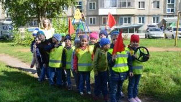 Детсадовцы Ачинска изучают ПДД в «Шагающем автобусе»