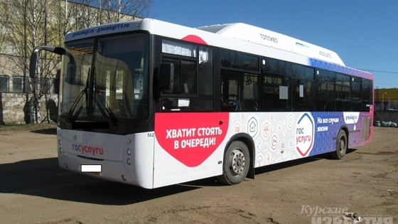 Акция направлена на популяризацию госуслуг в электронном виде На маршруты города Курска вышли брендированные автобусы, которые популяризируют электронную форму получения государственных и муниципальных услуг на территории Курской области. Реклама размещена на автобусах № 4, 7, 46 и др., принадлежащих крупной транспортной компании Курска, у которой много социальных и коммерческих маршрутов в разных частях города. Мероприятие организовано с целью повысить информированность граждан о преимуществах получения госуслуг в электронном виде.