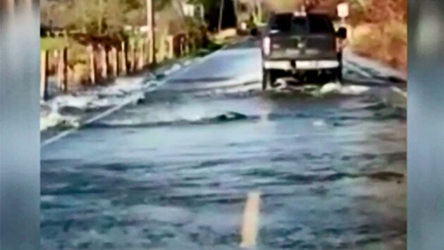 Очевидцы сняли на видео, как стая рыбы переплывает автомобильную дорогу В США глазам публики предстала странная для любого обывателя картина – стая лосося наперерез движущемуся транспорту, пытается пересечь подтопленную автомобильную дорогу. Не сообщается, пользуется ли рыба пешеходным переходом, но мы надеемся, что лосось соблюдает ПДД. Рыба буквально на брюхе выползает из кустов на проезжую часть и против течения переплывает на противоположную сторону трассы. Впрочем, местных жителей это не сильно удивляет – для этих мест ситуация обычная. В сезон дождей ручьи наполняются водой, а рыба идет по ним вверх на нерест. А тут, как назло, такая напасть в виде автомобильной трассы. Поэтому лосось выкручивается, как может, и буквально рискуя жизнью, и возможно пренебрегая правилами, переплывает дорогу.
