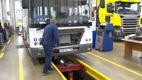Главный инженер ГУП МО «Мострансавто» Сергей Филимонов приехал на транспортное предприятие в Одинцовском районе с проверкой автобусов на готовность к зимнему периоду, сообщил корреспондент «360». В сервисном центре в Голицино современное обслуживание проходит по 20 автобусов Мострансавто в день. Диагностика занимает несколько часов. Сотрудники центра проверяют климатическую, тормозную и рулевую системы транспорта. «Мы подключили диагностическую программу, в которой происходит проверка всех систем автобусов, всех электронных систем. Если видим какие-то неисправности, ремонтируем», — рассказал механик Алексей Новиков. Мострансавто выбрало в качестве обслуживания транспорта шведскую компанию «Сканиа», так как она является основным производителем узлов и агрегатов автобусов. Источник фото: телеканал «360» «Первого декабря мы закончили подготовку к осенне-зимнему сезону. Филиалы отчитались перед главным предприятием о 100% готовности подвижного состава к зиме», — отметил Сергей Филимонов. Представители перевозчика уверены, что такая комплексная диагностика общественного транспорта, своевременное техническое обслуживание и использование оригинальных запчастей позволит продлить срок службы автобусов, а также даст гарантию безопасности пассажиров во время поездок. «В работу входит стандартное техническое обслуживание по регламентным картам завода-производителя шасси. Плюс дополнительные точки и моменты, связанные с кузовной надстройкой, климатической системой, системой кондиционирования и отопления», — подчеркнул технический директор сервисного центра Антон Павловский. Общая протяжённость маршрутов «Мострансавто» составляет свыше 30 тысяч километров. Каждый день автобусы перевозят более полутора миллионов человек.