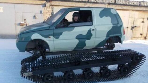 Россия славится своими умельцами со светлыми умами и нестандартными идеи. Много кулибинов самоучек изобретают конструкции, которые потом идут в серию, а они становятся знаменитыми инженерами технологами. Не исключением является и глубинка нашей родины. Именно здесь, неизвестный пенсионер Виктор Сенников, своими руками сконструировал малогабаритный вездеход, взяв для этого свой автомобиль Ока. Как уже понятно основой стало камазовское детище, двухцилиндровая малолитражка. Изменив конструкцию подвески и ходовой части, поставив гусеницы, пенсионер получил неплохой вездеход, способный ездить по глубокому снегу и бездорожью. Кроме проходимости автомобиль Ока приобрела агрессивный вид и лебедку. Система управления также изменилась.