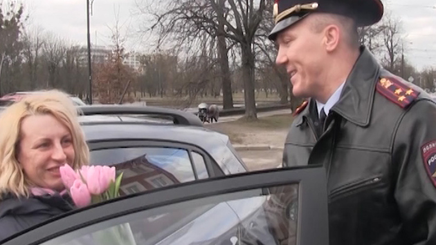 Госавтоинспекция Ставрополья вручает цветы для автоледи в преддверии Международного женского дня