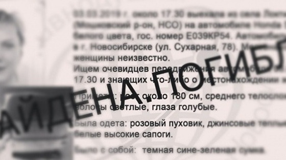 Татьяна Мамина без вести пропала еще в начале марта. При этом ее автомобиль обнаружили на стоянке. Сегодня волонтеры отряда «ДоброСпас-Новосибирск» сообщили, что женщину нашли мертвой. Подробности гибели не раскрываются. Однако в пресс-службе ГУ МВД России по Новосибирской области эту информацию не подтвердили. В полиции заявили, что оперативно-розыскные мероприятия продолжаются. Напомним, 3 марта Татьяна Мамина уехала на своем автомобиле из Мошковского района домой в Новосибирск на улицу Сухарная. После этого она перестала выходить на связь с родными. Фото: «ДоброСпас-Новосибирск»