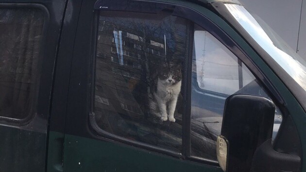 Тверской уличный кот поселился в "Газели" и живет там уже год