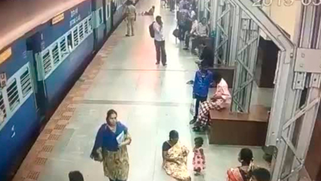 В Индии полицейскому удалось в последний момент вытащить мужчину, провалившегося в проем между движущимся поездом и платформой. На видео произошедшего обратил внимание информационный портал The News Minute. В воскресенье, 19 мая, 45-летний Ямунаппа (Yamunappa) опаздывал на поезд, ненадолго остановившийся на вокзале города Беллари, штат Карнатака. Отчаявшийся пассажир попытался запрыгнуть в вагон, однако поскользнулся и начал проваливаться в зазор между поездом и платформой. На помощь Ямунаппе кинулись стоявший на платформе пассажир и полицейский. За несколько секунд им удалось вытащить мужчину. «Состав уже отправился, когда человек пытался сесть в поезд и поскользнулся. Он был спасен в самый последний момент. Было много случаев, когда мы видели, как тела разрезало на две части в подобных ситуациях», — заявил Бапуджи (Bapuji), комиссар по безопасности на вокзале. Он добавил, что полицейского представят к награде за оперативность. По словам племянника Ямунаппы, тот не пострадал.