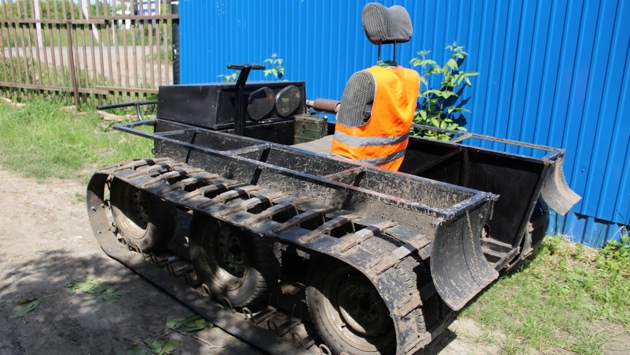 Мужчина потратил немало времени, чтобы собрать транспортное средство. В группах соцсети "ВКонтакте" сегодня, 2 июля, появились фотографии и видеозапись, но которых запечатлён болотоход, собранный омичом Константином - работником СТО. На снимках изображена машина на гусеничном ходу, правда, ехать на ней может только сам водитель - транспорт одноместный. Управлять им можно при помощи педалей и специального рычага. Корреспонденту "Омск Здесь" друзья Константина рассказали, что на сборку из подручных деталей у него ушло ползимы, гусеницы ему отдали знакомые. В шутку конструктор сказал, что собрал болотоход, чтобы кататься по даче, которая располагается в СНТ "Отдых" недалеко от 5-й Ленинградской. Из-за переувлажнения почвы территорию некоторых приусадебных участков там подтопило. "Омск Здесь" ранее публиковал подборку автомобилей, собранных омичами собственноручно , которые сейчас выставлены на продажу. Так, одна из самых дорогих машин - восьмиместный турбодизельный болотоход высотой с одноэтажное здание. Его стоимость составляет около 600 тыс. рублей. Фото: Виктор Власов
