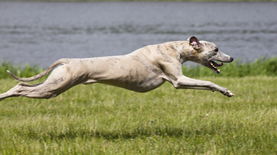 Средняя скорость бега обычной средней собаки находится в пределах от 10 до 15 км/ч. И максимальная скорость у многих пород примерно одинаковая: так, немецкие овчарки и доберманы бегают до 35 км/ч, кавказские овчарки – до 30 км/ч. Но есть уникумы, которым по силам показывать результаты почти в два раза быстрее. Скорость этих быстроногих самородков фантастична – до 65 км/ч. Самые быстрые собаки в мире Чемпионом всех чемпионов признана охотничья английская борзая – грейхаунд. Ее скорость на отметке в 67,32 км/ч зафиксирована в Книге рекордов Гиннеса. Невероятно, но это более 18 метров в секунду - никто из ее сородичей так быстро не бегает. Эти стройные чемпионы высокие в холке – не менее 70 см, при среднем весе не более 40 кг. У этих быстроногих особей длинные конечности, мускулистое строение тела. Они крайне хороши на маленьких дистанциях, а вот длинные забеги им не по силам и явно противопоказаны. Они не способны преследовать дичь долго из-за отсутствия выносливости. Персидские борзые – салюки – чуть-чуть уступают грейхаундам в скорости – их предел 65 км/ч. Зато они отличаются большей выносливостью. Их высота в холке не превышает 70 см, вес – до 25 кг. Несмотря на достаточно сухое сложение, это физически сильные собаки. Арабские борзые – слюгги - развивают скорость до 65 км/ч, по выносливости они абсолютно не уступают салюкам. Правда, в отличие от них, слюгги невероятно гибкие, способные к резким разворотам. Их рост в холке до 72 см, вес – до 32 кг. У этих собак красивая тонкая кожа и высокие мускулистые конечности. Собачьи бега Первые забеги борзых за искусственным зайцем ведут свое начало с 1776 года, когда их начали практиковать англичане. С тех пор выработаны определенные правила, регламентирующие эти старинные соревнования. Например, начать беговую карьеру собака может не раньше чем в девять месяцев от роду, а закончить в девять лет. К соревнованиям допускаются собаки только одной породы. Чтобы собаки выбегали на трассу одновременно, в стартовых боксах сзади расположены дверцы, куда запускают собак, а спереди находится решетка. Когда решетка поднимается, собаки стремительно выбегают на дистанцию в погоне за «дичью». Победителем считается собака, которой посчастливится первой пересечь линию финиша. В Европе специальные стадионы для бегов (кинодромы) начали появляться более ста лет назад. Каждый собачий трек имеет свою специфику: длину дорожки от 450 до 500 метров и правила – старт с гандикапом, длинная дорожка с барьерами. Известно, что у нас в стране собачьи забеги проводились на Московском ипподроме в 1930-х годах. Потом это все было забыто на долгие шестьдесят лет. В новое время первый открытый чемпионат России по бегам борзых состоялся только в 1990 году. Сегодня бывший московский стадион «Битца» переоборудован под кинодром, где по выходным дням иногда проходят забеги. Дистанция на нем очень короткая — всего 180 метров, но от этого соревнования по накалу становятся еще острее. Petstory – знаем все о кошках и собаках Petstory – знаем все о кошках и собаках