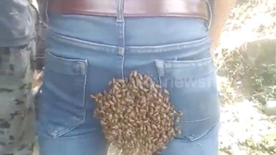 В индийском городе Кохима, штат Нагаленд, пчелиный рой сел на случайного прохожего. Кадры, снятые очевидцем, опубликовал сайт Newsflare. Сначала на джинсы 25-летнего мужчины приземлилась пчеломатка, за ней последовали другие пчелы. Избавиться от роя удалось лишь после того, как насекомое поймали. «Он положил ее в контейнер, и вскоре все остальные перелетели к ней», — рассказывает автор видео. Чтобы пчеломатка не сбежала, ей частично оборвали крылья. Пчелы продолжали роиться возле нее еще 30 минут, а мужчина, все еще опасавшийся их возвращения, укрылся в автомобиле. В 2018 году сообщалось, что в американском штате Калифорния на уборщицу напали пчелы и облепили ее с ног до головы. Насекомые налетели на американку, когда та вышла из машины, чтобы достать из багажника вещи. Женщину доставили в больницу в критическом состоянии.