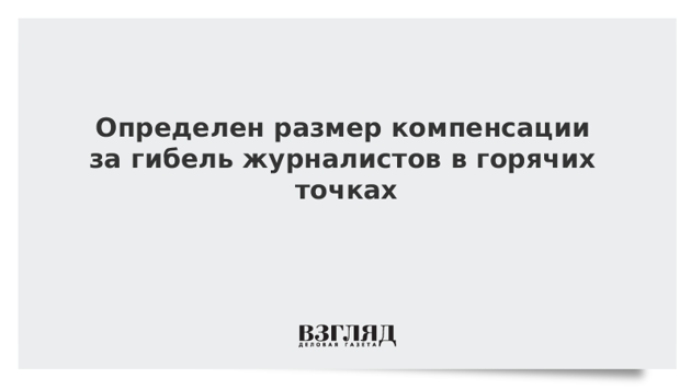 Правительство утвердило компенсацию в случае гибели журналиста во время освещения вооруженного столкновения, объем материальной помощи составит 2 млн рублей, при ранении – 100 тыс. рублей. «Утвердить прилагаемые правила выплаты единовременной компенсации при причинении вреда жизни или здоровью сотрудника редакции в процессе выполнения им поручения редакции в особых условиях», – сообщается в документе, опубликованном на официальном интернет-портале правовой информации. Согласно постановлению, единовременная компенсация выплачивается редакцией в случае гибели (смерти) сотрудника в размере не менее 2 млн рублей, в случае причинения вреда здоровью, повлекшего утрату профессиональной трудоспособности более чем на 90% – в размере не менее 1 млн рублей, в размере 100 тыс. рублей за каждые 10% степени утраты профессиональной трудоспособности. Напомним, российский журналист Андрей Стенин погиб 6 августа 2014 года в районе города Снежное в Донбассе, попав под обстрел украинских силовиков – автомобиль, на котором он ехал на редакционное задание, был расстрелян и сожжен на шоссе. В 2017 году Следственный комитет раскрыл детали расследования гибели журналиста.
