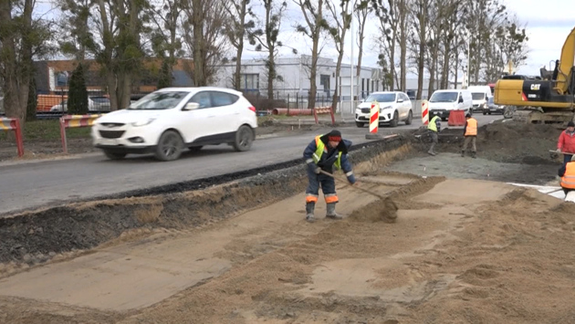 Открылся заасфальтированный участок дороги ведущий от городской черты в сторону центра Калининграда. Движение из центра организовано по временной схеме, с объездом по Орудийной и Старокаменной. Подрядная организация сократила сроки отставания на объекте. По словам рабочих, объезд организован грамотно, больших заторов с утра не было, водители не возмущались. БЕНИАМИН МАНУКЯНЦ, БРИГАДИР: -Приступили к работам 28 ноября, заасфальтировали 270 метров по одной стороне. Сейчас начали вторую полосу делать, перепустили движение, где уже есть асфальт. Вынимаем грунт, песочим, щебеним, дальше будем асфальтировать.