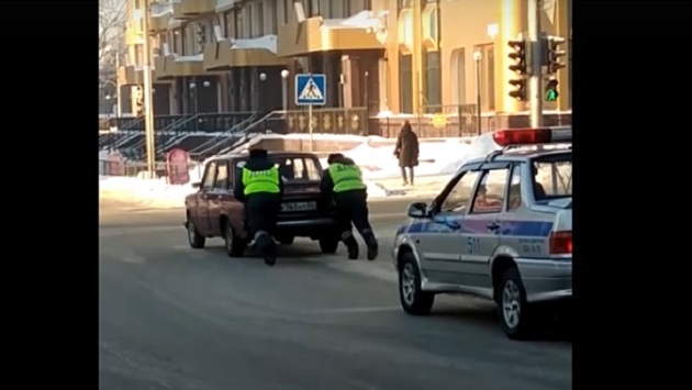 «Красавчики» - экипаж ДПС подтолкнул замерзший ВАЗ