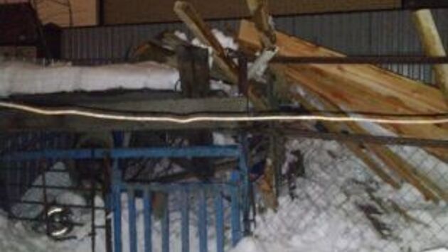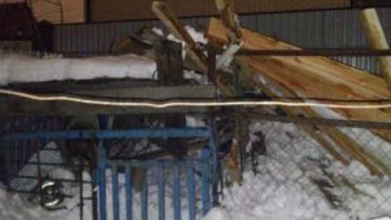 Глыба снега обрушилась на вольер с собаками с крыши дома в Новосибирске