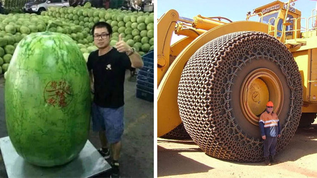 Некоторые вещи не впечатляют нас своими габаритами, пока мы не получим возможность сравнить их с другими предметами. Если вам показывают фото и говорят, что на нем большой арбуз, то мы не всегда можем оценить реальные размеры, если рядом нет других объектов. Это правило касается чего угодно, и мы хотим показать вам наиболее интересные, на наш взгляд, сравнения. Этот лист явно уже не формата А4. Может А3? Когда говорят что кот большой, всегда уточняйте насколько. Или силач Хафтор Бьернссон слишком большой, или «Мини» для него слишком мал. Этой собаке нужна будка попросторнее. Индийский водопад Дудхсагар впечатляет сильнее в сравнении с поездом. На пляж Ла-Пуш, штат Вашингтон, США, океан часто выбрасывает разную мелочевку. Признайтесь, вы ведь тоже думали, что марсоход Curiosity Rover чуть больше крупной собаки? Этот конь не так уж и хорош для верховой езды. Креветки могут быть королевскими, а могут и просто гигантскими. Габариты самолетов тоже очень разные. Это лапка саламандры. Правда исполинской. А это рука баскетболиста по имени Кавай Леонард. Некоторыми пинцетами можно без проблем фехтовать. Бочонки бывают разными и это еще не самый вместительный. Всем снеговикам снеговик! И снова лист, на этот раз от бананового дерева. Хорошего мальчика должно быть много. Кроссовок Шакила О’Нила Улитка ахатина может заменить вам кота. В эти двери достучится далеко не каждый. Да, сравнивать можно и знаменитостей, причем не стоит делать поспешные выводы. Смотрите также — 16 мейн-кунов, в сравнении с которыми ваш котик будет смотреться крошечным Понравилось? Хотите быть в курсе обновлений? Подписывайтесь на наш Twitter, страницу в Facebook или канал в Telegram.