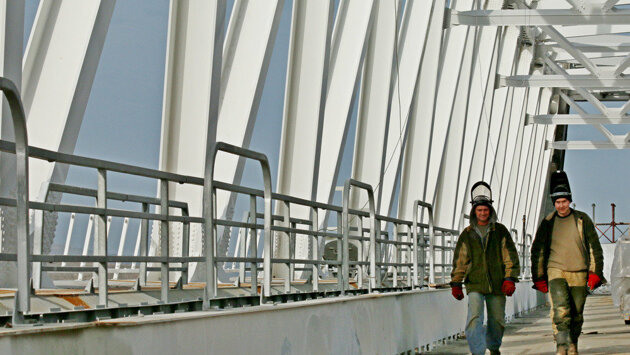 Специалисты из 15-тысячной команды строителей Крымского моста после его сдачи в эксплуатацию трудоустроены на объектах в семи регионах России. Об этом сообщил инфоцентр "Крымский мост". Покинувшие вахтовые городки на берегах Керченского пролива мостоотряды переехали в разные регионы страны - от Москвы до Приморского края. Инженеры и рабочие возводят мосты, участки автомагистралей и гидротехнические сооружения. На новых стройках применяются технологии, успешно реализованные при возведении Крымского моста. Например, строители из Тюмени собирали автодорожные пролеты Крымского моста на острове Тузла, а сейчас по этой технологии соединяют берега реки Артемовки на Дальнем Востоке. Мост и примыкающая к нему эстакада общей длинной более 1,5 километра станут частью новой трассы, что свяжет южные районы Приморья и три порта - Владивосток, Находка и Восточный. Еще один мост тюменцы строят на Ямале. Автопереход длиной более одного километра через реку Пур обеспечит круглогодичную связь населенных пунктов на правобережье с "большой землей". Мостоотряд из Ярославля переехал с берега Керченского пролива на юг Москвы, где поучаствовал в строительстве моста через Кожуховский затон длиной почти 800 метров. Сваи погрузили на глубину до 40 метров сквозь илистый грунт по технологии, также отточенной на Крымском мосту. Сейчас строители возводят еще один автомобильный мост через старое русло Москвы-реки - через затон Новинки. Он свяжет территорию бывшего завода им. Лихачева с проспектом Андропова. Это часть проекта перезагрузки заброшенных промзон российской столицы. Строители из Ростова-на-Дону стали первыми участниками проекта Крымского моста. Они вели подготовку к большой стройке в 2015 году и работали на объекте до укладки финальных рельсов. Коллектив переехал в Волгоград, где строит мост длиной более одного километра через Волго-Донской судоходный канал. Он войдет в состав обхода Волгограда. А бригада из Новороссийска возводила рабочие мосты в Керченском проливе. Сборно-разборные металлические конструкции соединяли участки большой стройки и обеспечивали перемещение и работу тяжелой техники на протяжении всех 19 километров. Сейчас коллектив строит причал в родном городе. - Радует, что команда востребована и трудится на новых объектах, - рассказал гендиректор компании "СГМ-Мост" Александр Островский. - В мостоотрядах много молодых строителей. Они работали на Крымском мосту вместе с бамовцами и переняли уникальный опыт. Это помогает им сейчас самостоятельно решать непростые технологические задачи в разных регионах страны. Большинство строителей Крымского моста - это молодые специалисты и профессионалы, закаленные БАМом, подготовкой инфраструктуры к саммиту АТЭС во Владивостоке, Универсиаде в Казани, Олимпиаде в Сочи.