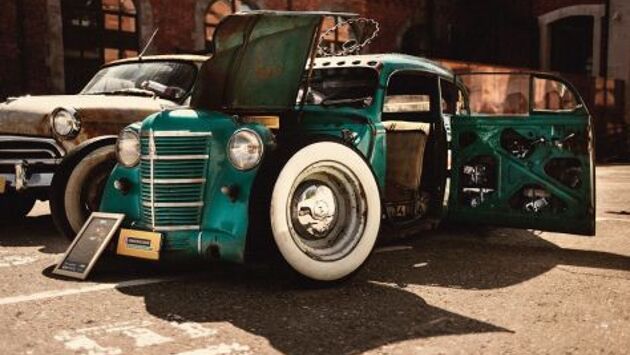 Любопытно, что старый «Москвич» 1955 года выпуска был куплен для данного проекта в 2013 году не в очень хорошем состоянии. Стоимость рэт рода из Москвича-401 варьируется от 410 до 450 тысяч рублей. То есть реставрировать его смысла уже не было. Предыдущий автовладелец сменил «начинку» авто на ходовую и мотор от 408-го «Москвича». Чтобы превратить раритет советской эпохи в стильный рэт род, авторы проекта занизили крышу, а седан превратили в двух дверное купе. Крылья и вовсе убрали за ненадобностью. Были установлены две пневмоподвески от «Москвича»-408, подкапотное пространство занял мотор от «Москвича»-412, 5-ступенчатая МКПП от «Жигули». Над лобовым стеклом красуется кастомный козырек, который сделали из усилителя порога «Жигулей». Любопытен тот факт, что этот рэтрод своим ходом преодолел более тысячи километров, чтобы выступить на Московском фестивале. Нельзя сказать, что рэтрод на пять с плюсом выдержал поездку, авто немного потрепало в долгой дороге. После чего владелец старинного авто решил продать его.